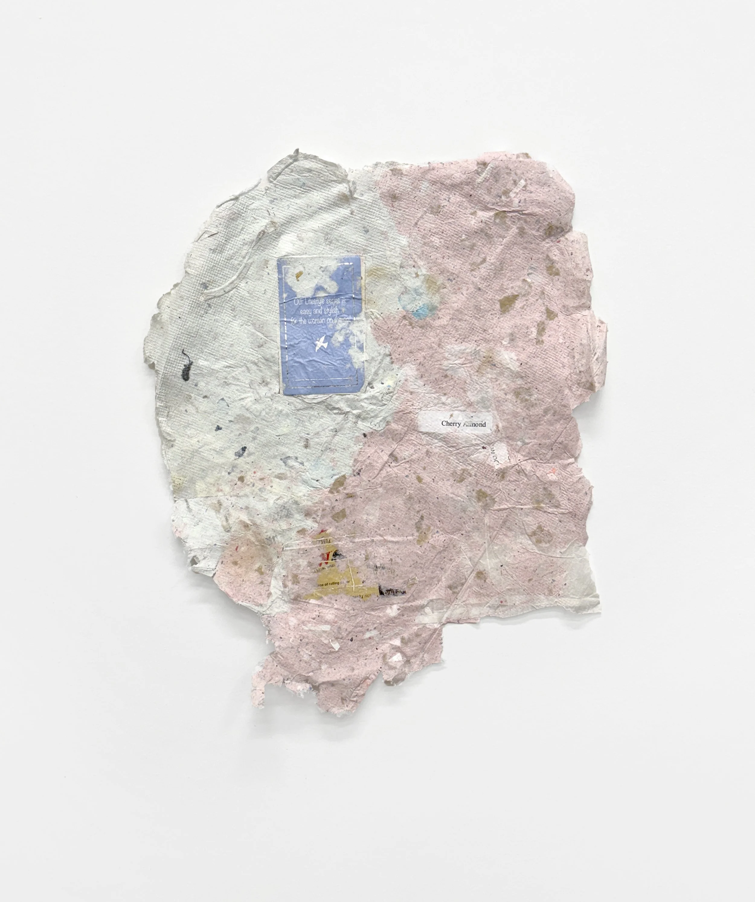 high school and freshman year, days in the sun, mildew, yellowing post-its, yarn and thread, torn screens,